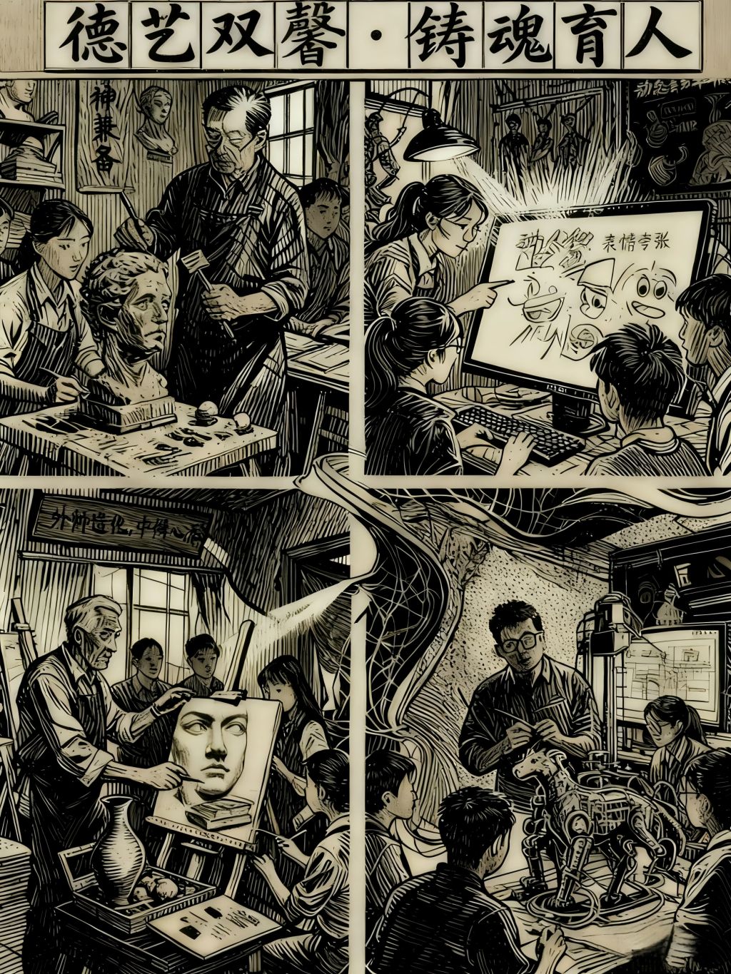 以多元艺术教学场景,展现师者德艺兼修、以美育人铸魂的师德风貌,彰显艺术教育中的师德传承与育人担当。