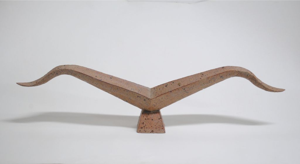 师者,传道授业解惑,传承知识与中华民族优秀传统文化。作品以泥片成型工艺,经过切削和拼贴,对称性的形式与手法形成了一种互动。作品上下部分之间蕴含了一种空间,在软硬、曲直之间形成一种对比。平直底座与顶部弧线暗喻出一种对传承的思考,在面对创新与传承的选择时,该如何进行平衡,发人深思。